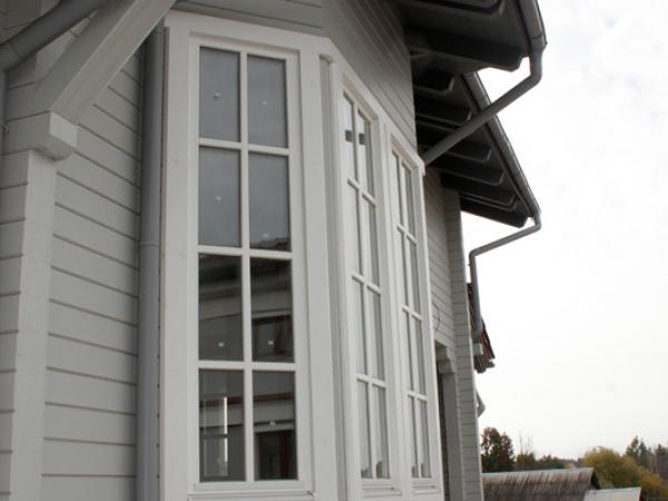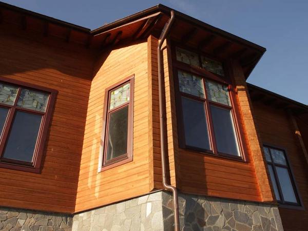 Остекление прямоугольными и трапециевидными деревянными окнами
